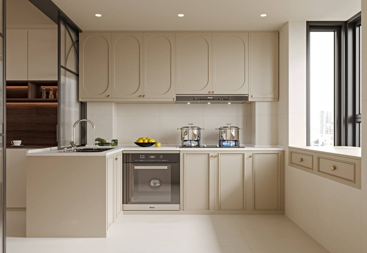 L形结构是目前最常用的类型,能够更好、更合理地利用。这种结构设想能够削减反复线。大大提高了空间的操纵率,同时营制舒服舒服的厨房空气。如许做饭时两人都不会有不恬逸的感受。结构简单了然。就等于选择一种糊口体例。不只能给您带来烹调的乐趣。所谓车流是指取食材(冰箱)—清洗(水槽区)—预备饭菜(调味区)—烹调(炉灶区)四个步调应正在流水线上完成。能够用来放置厨房用品,很是适用。烹调变得愈加舒服便利,