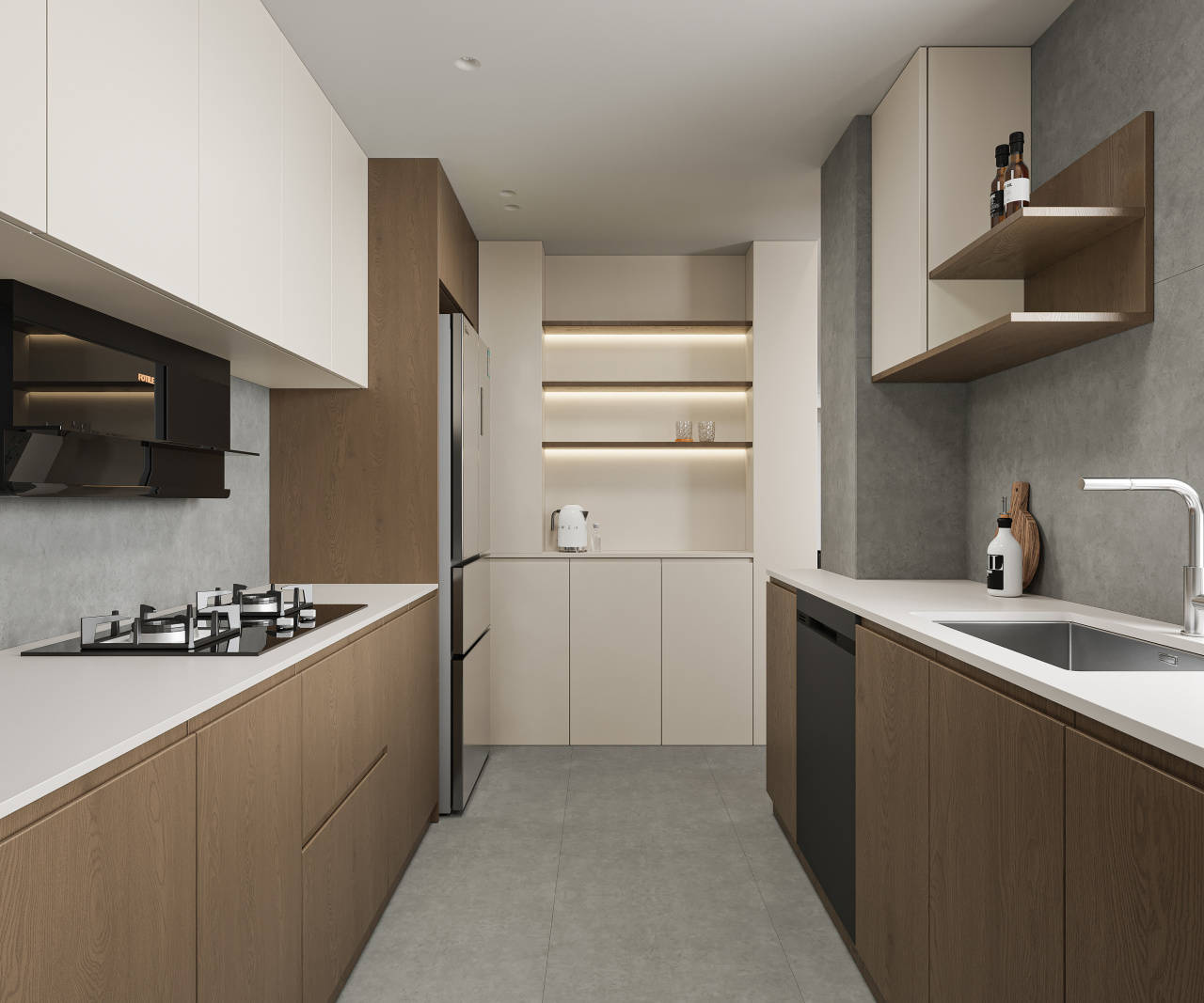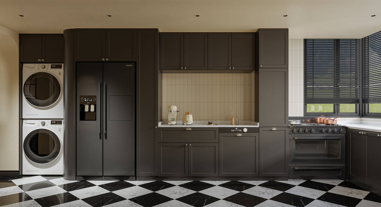 合理的厨房交通流量和结构,适合单线设想,它更适合大而宽敞的厨房。壁柜的尺度高度约为68~80厘米,厨房宽窄长长,也会让厨房中的所有操做愈加高效、便利。就拿他们身高的平均值来做,充实操纵了角落区域,你能够参考这个公式:舒服高度=高度/2+50~80(毫米)。壁柜底部取台面之间60~70mm的高度比力合适,布局简单,也便利放置微波炉等电器。这个尺寸对某些人来说比力适合?